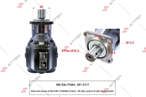Bơm ben Howo 6100 (CBF-F100H8S) 8 then- 2 lỗ dầu đuôi – Antek